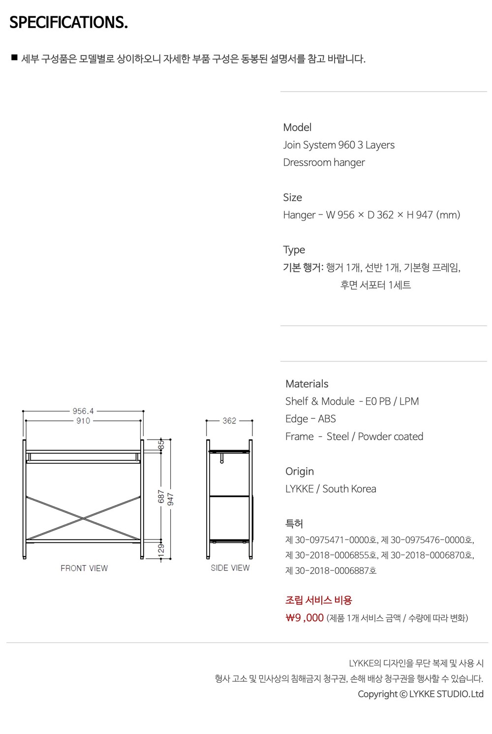 조인 시스템 960 드레스룸 3단 로우행거