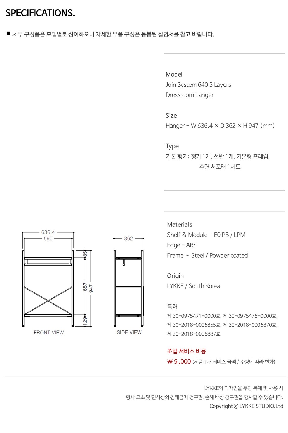 조인 시스템 640 드레스룸 3단 로우행거