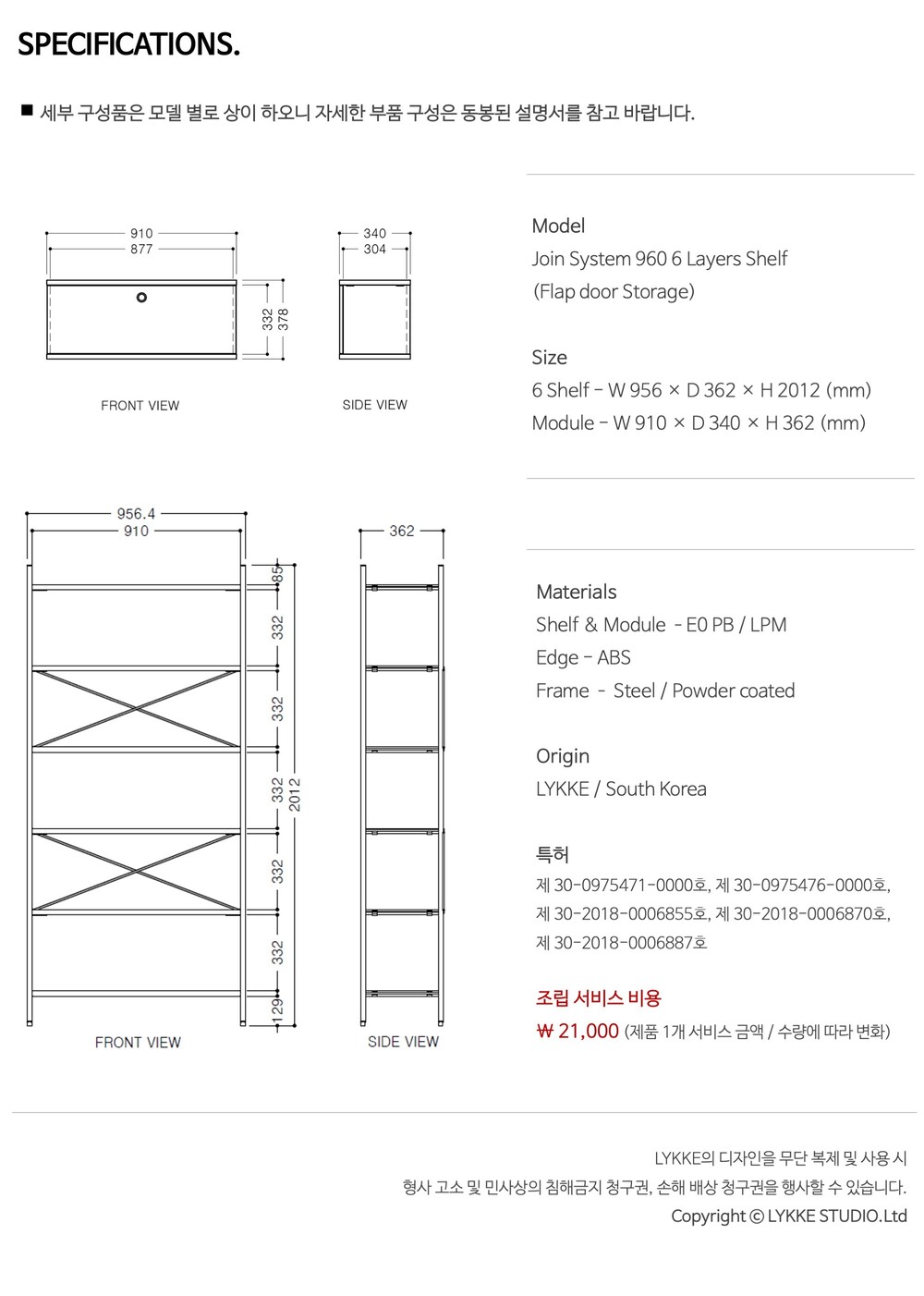 조인 시스템 960 6단 선반장(플랩도어 수납장)
