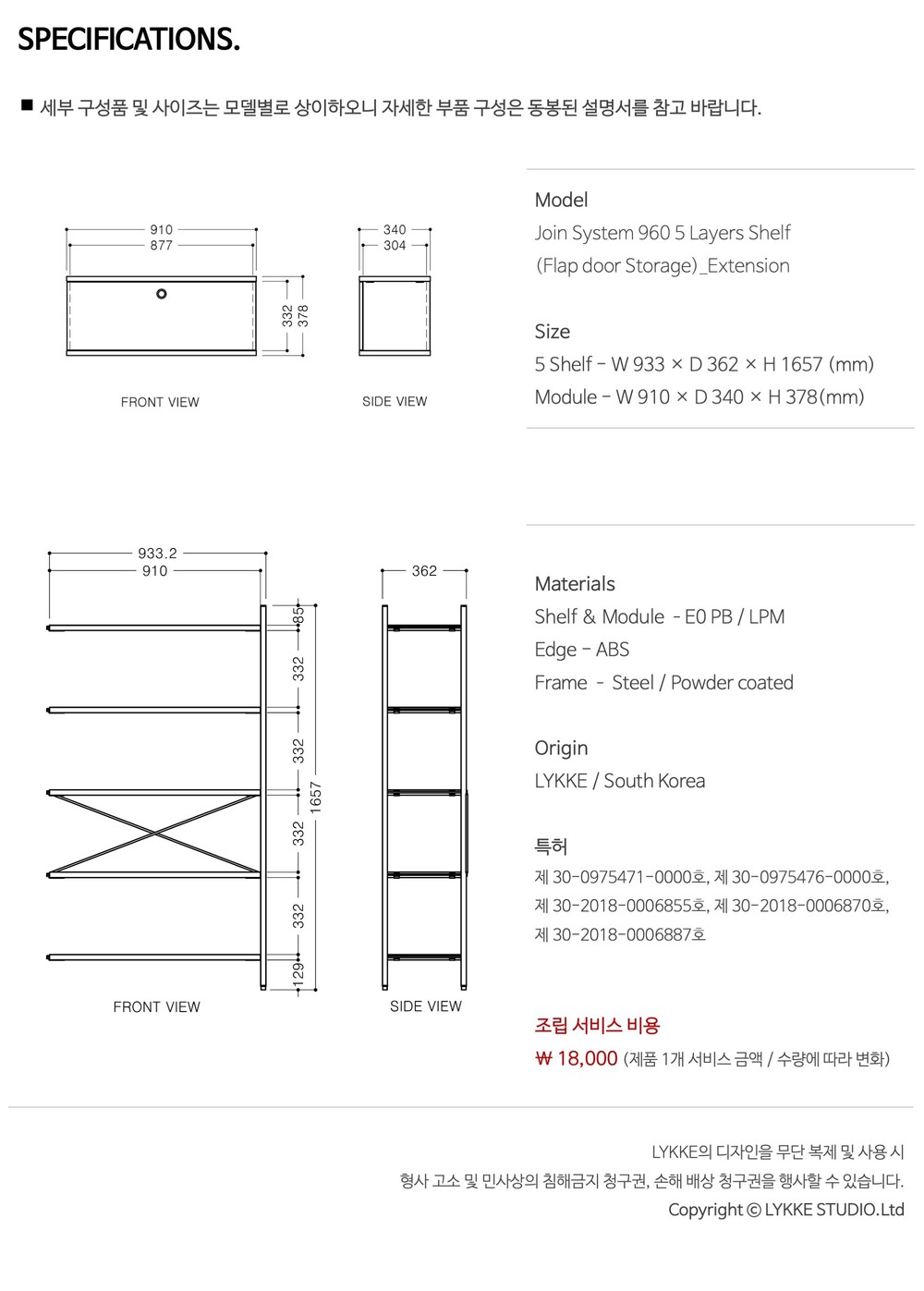 조인 시스템 960 5단 선반장(플랩도어 수납장)_연결형