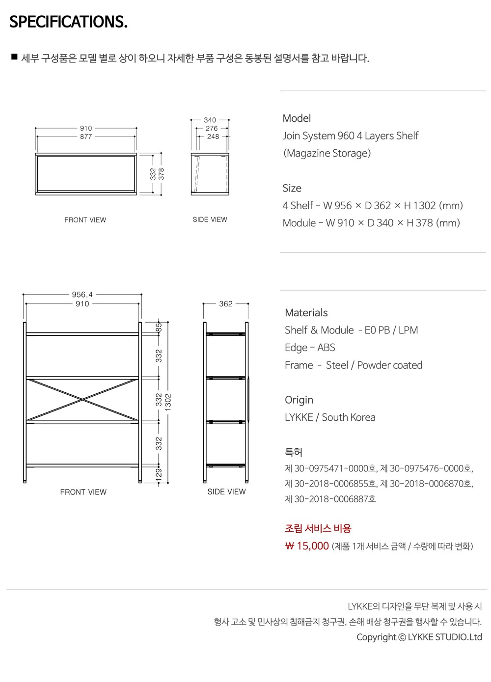 조인 시스템 960 4단 선반장(매거진랙 수납장)