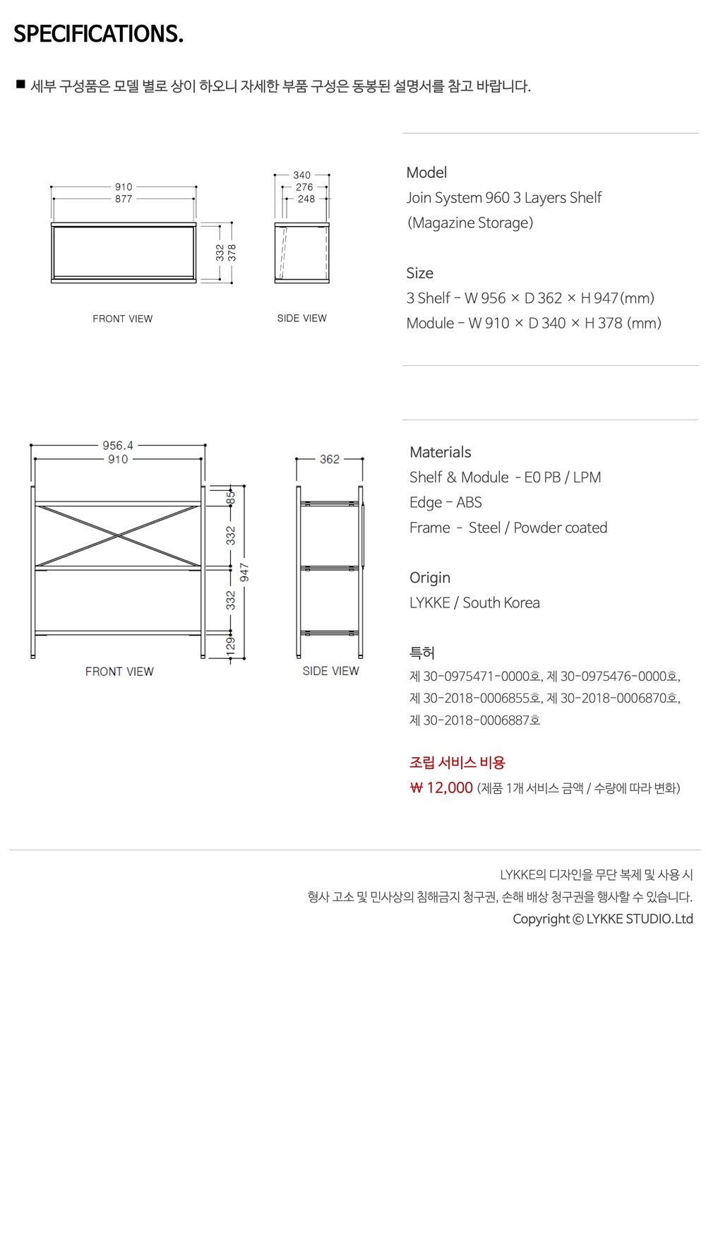 조인 시스템 960 3단 선반장(매거진랙 수납장)