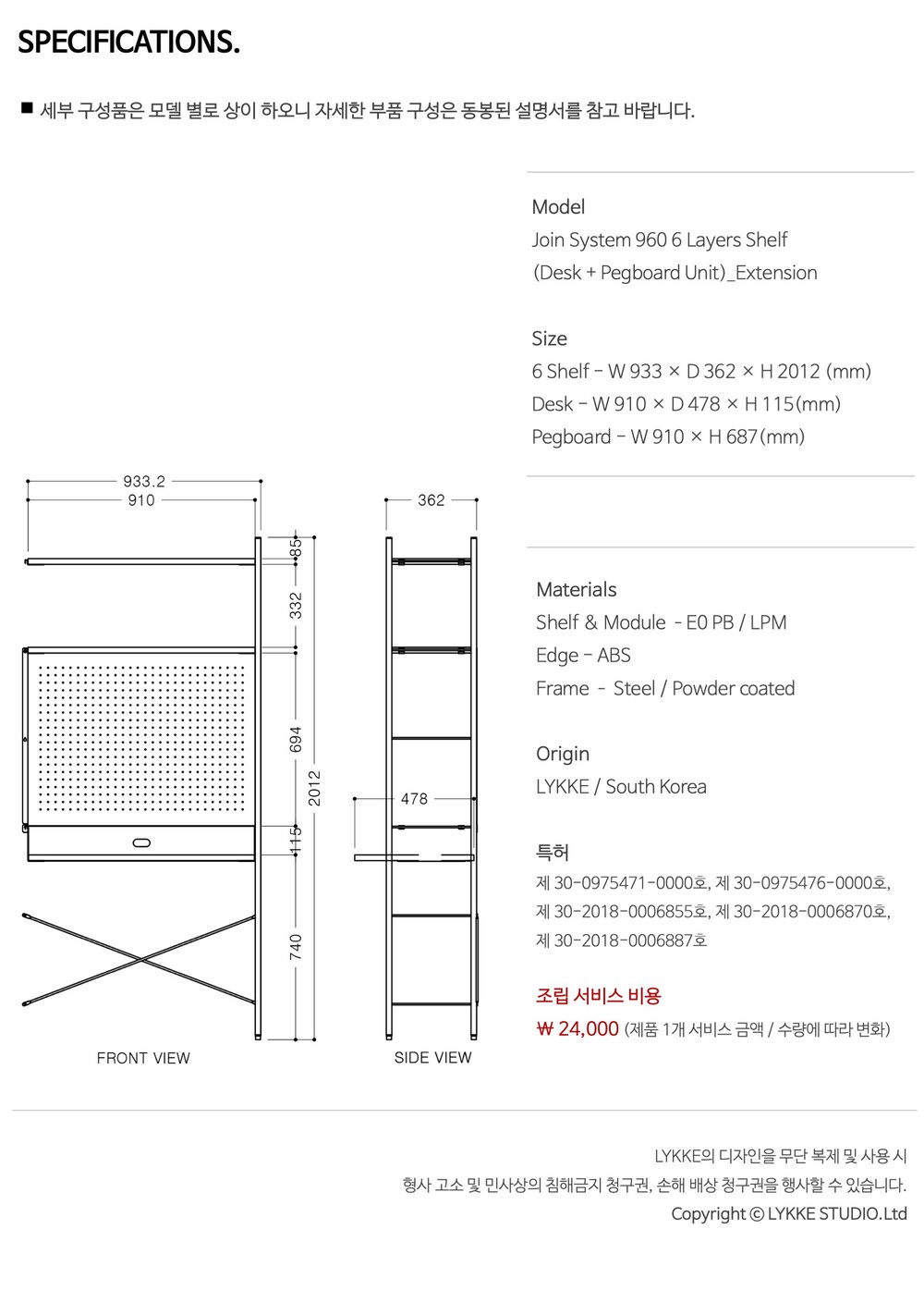 Join System 960 6 Layers Shelf (Desk + Pegboard Unit)_Extension