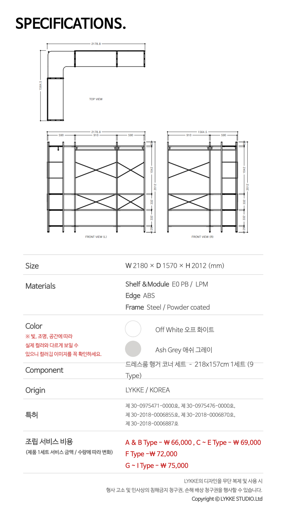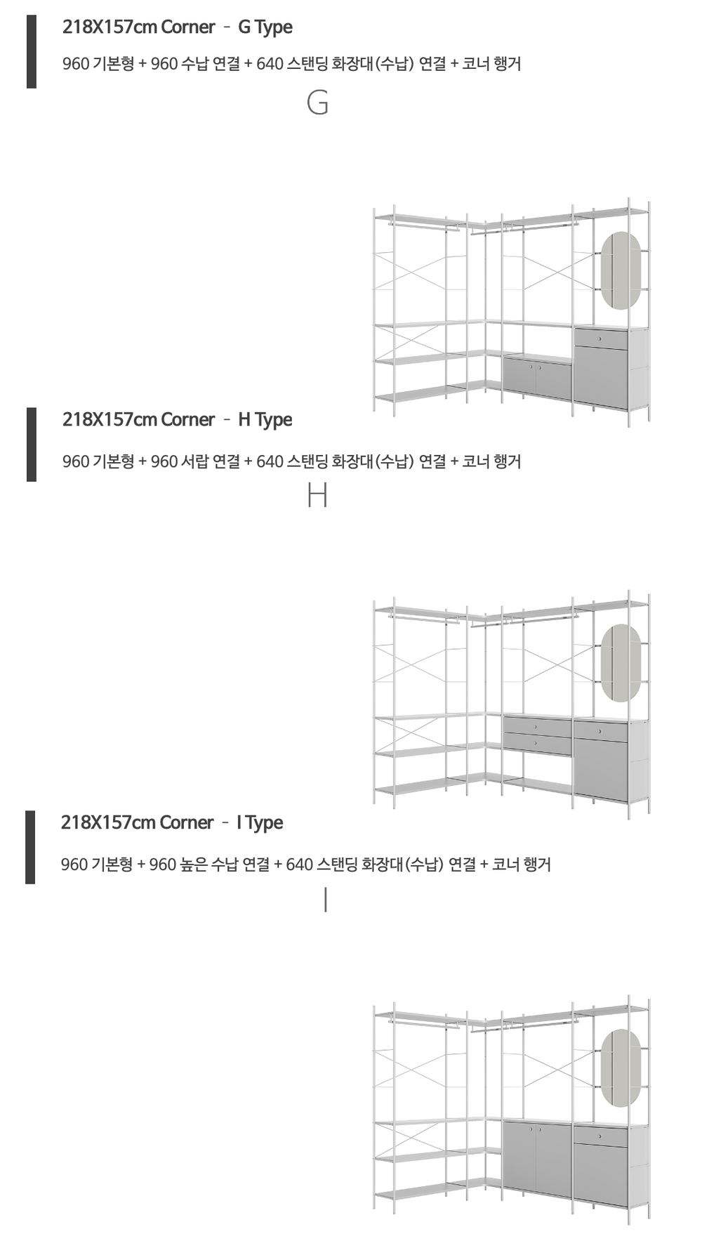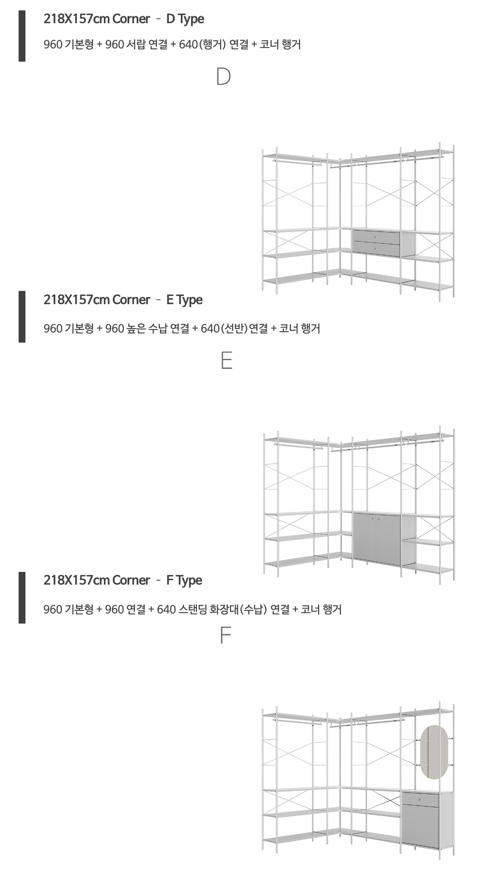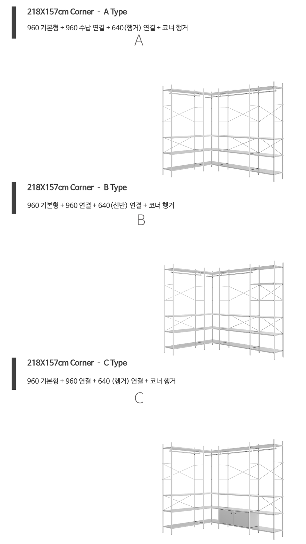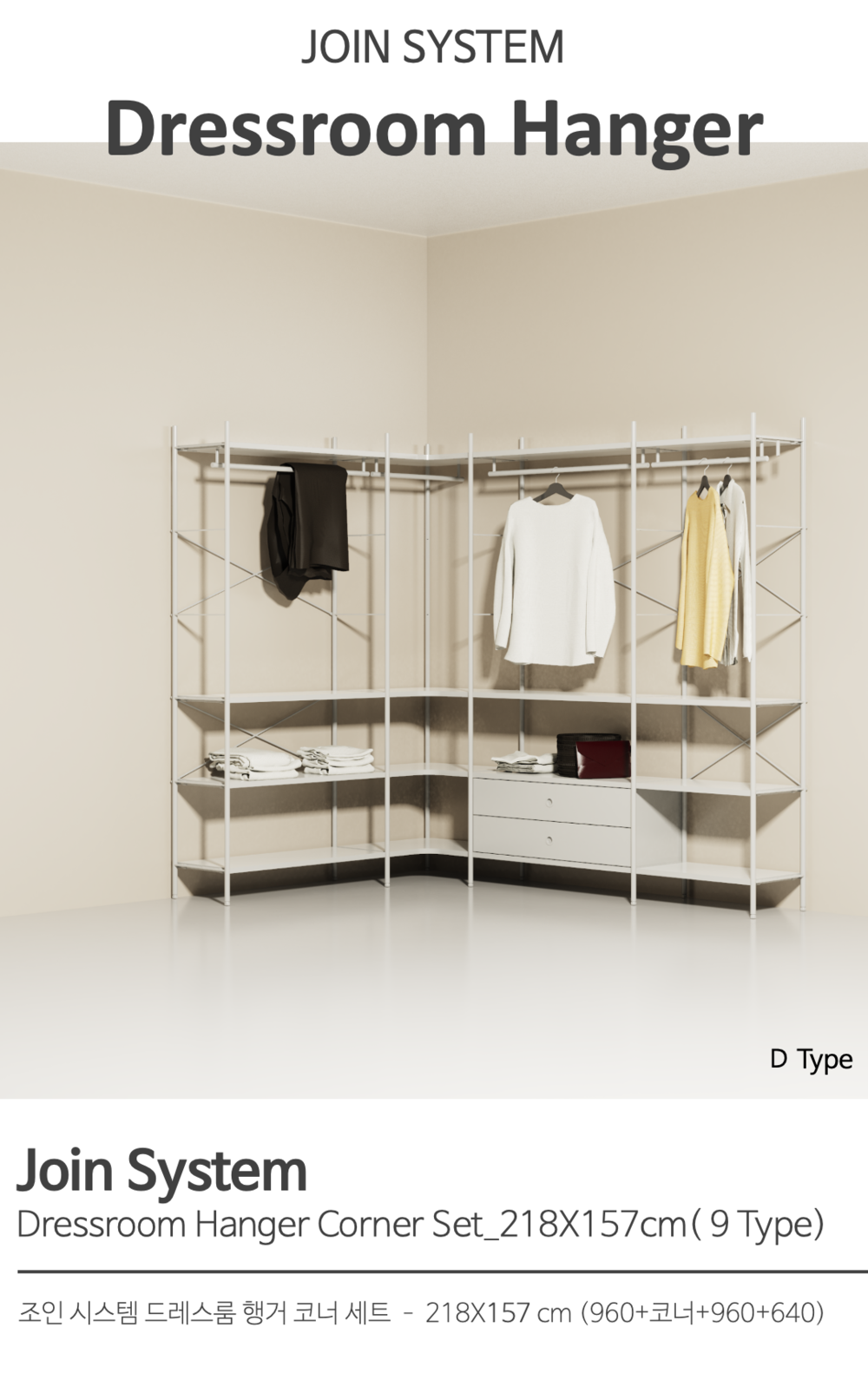 조인 시스템 드레스룸 행거 코너 세트 218X157CM(9 Types)