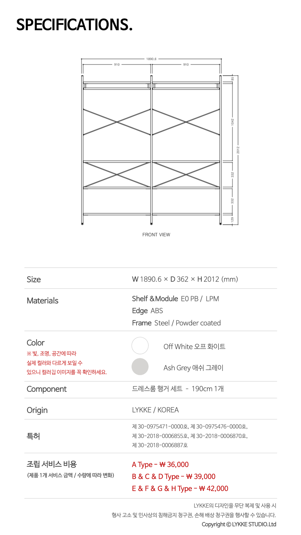 조인 시스템 드레스룸 행거 세트 190CM(8 Types)