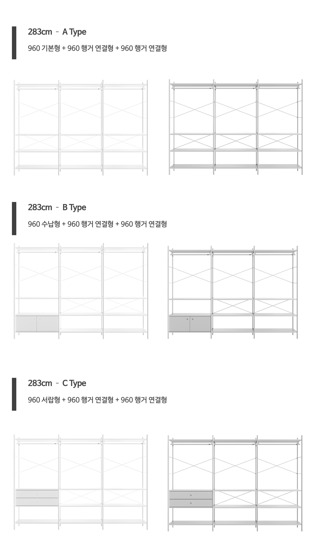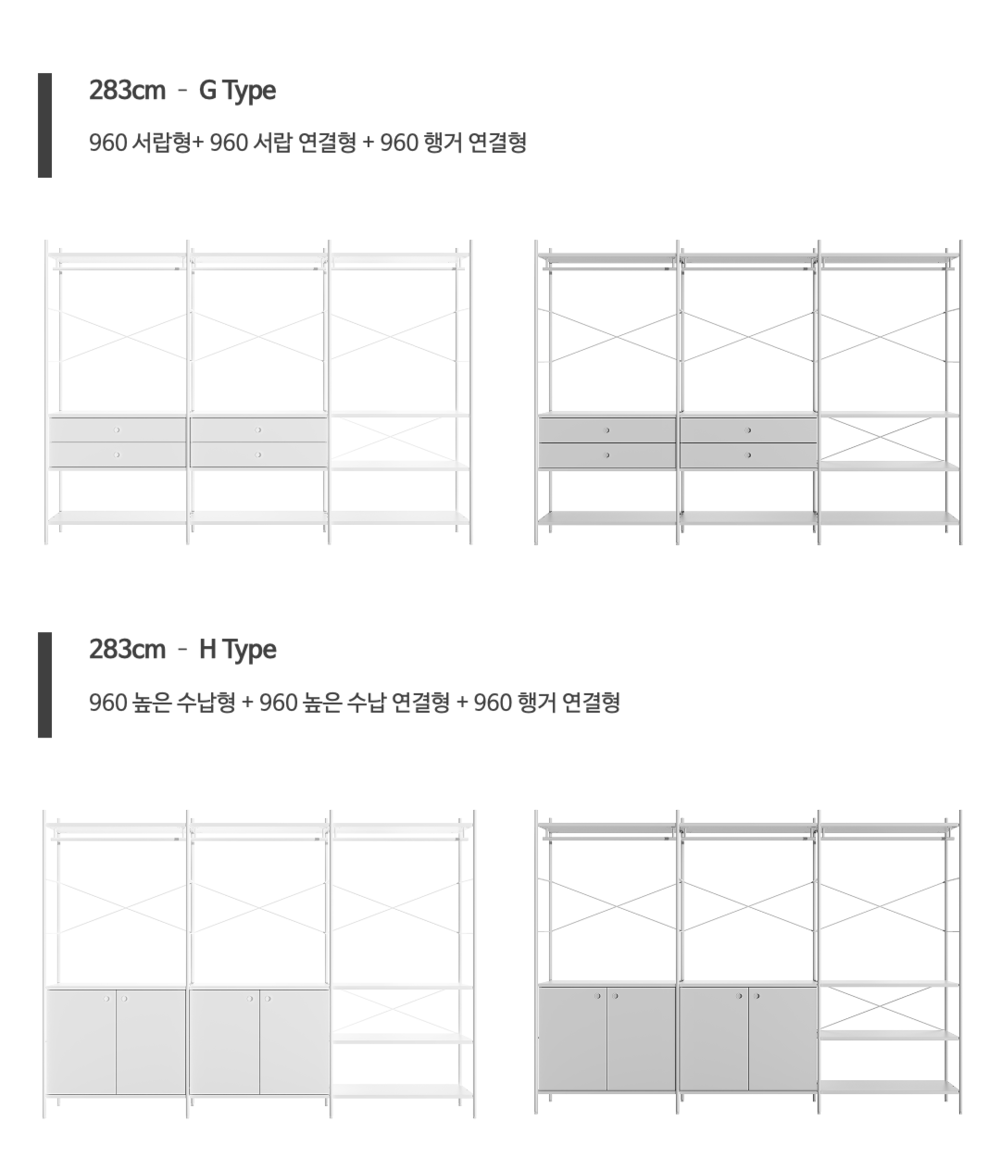 조인 시스템 드레스룸 행거 세트 283CM